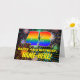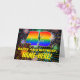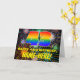 The front of this exciting and fun birthday-themed greeting card design features a large number “43” with a multicolored rainbow spectrum inspired gradient pattern, along with the message “HAPPY 43rd BIRTHDAY,”, and an editable recipient name. The background of the front features a vibrant, multicolored pattern inspired by bursting celebratory fireworks. The inside features a customisable birthday greeting message, or could perhaps be cleared and left blank if a message is to be written by hand instead. An upbeat, customisable birthday greeting card like this might be used to acknowledge somebody’s forty-third birthday. [~Z0000619]