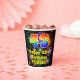 This cheerful and fun birthday paper cup design features a large number “43” with a rainbow spectrum gradient inspired pattern, along with the message “Happy 43rd Birthday,”, and a customisable name. The background features a colourful pattern inspired by the look of bursting celebratory fireworks. Colourful, vibrant paper cups like this might be fun to have at a birthday party being held to celebrate somebody’s 43rd birthday. [~Z0000539]