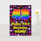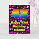 The front of this cheerful and colourful birthday-themed greeting card design features a large number “43” having a rainbow spectrum gradient inspired pattern. It also features the message “Happy 43rd Birthday,”, and an editable name. The background of the front features a pattern of pink, red, and purple heart shapes of various sizes. The inside has a customised birthday greeting message, or could perhaps be cleared and left blank if a message is to be written by hand instead. A happy, personalised birthday greeting card like this might be used to acknowledge somebody’s forty-third birthday. [~Z0000551]