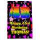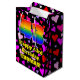 This fun and happy birthday-themed giftbag design features a large number “43” having a rainbow spectrum gradient inspired pattern. It also features the message “Happy 43rd Birthday,”, and a personalised name. The background features a pattern of purple, pink, and red heart shapes. A birthday themed gift bag like this might be a fun way to wrap a gift or present being given to celebrate somebody’s forty third birthday. [~Z0000551]