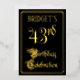 The front of this ornate, luxurious, foil forty-third birthday party invitation design features the message “43rd Birthday Celebration” in elegant script-style text. It also has a personalised name. The background of the front is coloured black by default (although it can be customised to a different colour). The back features personalised details about the event, such as the date, time, location, and any other relevant information. Opulent, elegant, editable invitations like these might be used to invite guests to a birthday celebration/party being held to honour somebody’s forty third birthday. [~Z0000589]