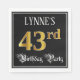 This elegant and opulent birthday-themed paper napkin design features a customizable name and the message “43rd Birthday Party”. The large number “43rd” has an imitation/faux gold-inspired coloring pattern, and the words “Birthday Party” are in ornate script-style text. The background is colored black by default (although it can be customized). Luxurious, fancy paper napkins like this might be useful at a birthday party/celebration being held in celebration of somebody’s 43rd birthday. [~Z0000565]