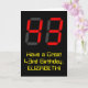 The front of this nerdy and geeky birthday greeting card design features a large number "43" having a red seven segment digital display style appearance, along with the message "Have a Great 43rd Birthday," and a customizable name, on a black colored background. The inside features a custom birthday greeting message, or could perhaps be cleared and left blank if a message is to be written by hand instead. A customizable birthday card like this might be a fun way to send birthday wishes to somebody who is celebrating their forty-third birthday. [~Z0000386]