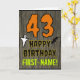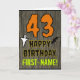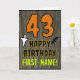 The front of this spooky and scary Hallowe'en birthday themed greeting card design features a large number "43", along with the message "HAPPY BIRTHDAY,", and a personalized name. There are also depictions of a ghost and a bat on the front. The inside features an editable birthday greeting message, or could perhaps be cleared and left blank if a message is to be written by hand instead. A customizable birthday card like this might be a fun way to acknowledge somebody’s forty third birthday that also falls on Halloween (October 31st). [~Z0000410]