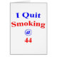 I quit smoking @ 44 It's never too early or too late to quit smoking. If you have quit smoking or are going to, stand tall, be proud and let everyone know you quit smoking at 44 years old.