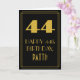 The front of this vintage appearance birthday greeting card design features a large art deco look inspired number "44", the message "HAPPY 44th BIRTHDAY,", an editable name, and a border pattern consisting of lines. There is a black-coloured background on the front. The inside features a custom birthday greeting message, or could perhaps be cleared and left blank if a message is to be written by hand instead. A customisable birthday card like this might be a fun way to send a message in celebration of somebody’s forty fourth birthday. [~Z0000502]