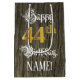 This opulent and fancy birthday themed gift bag design features the message “Happy 44th Birthday,”, plus a custom recipient name. Part of the message is in luxurious script-style text. The large number “44th” features a faux/imitation gold-inspired look pattern. The background has an imitation/faux woodgrain-inspired pattern. An ornate birthday themed gift bag like this might be a respectable way to wrap a gift or present being given to celebrate somebody’s forty fourth birthday. [~Z0000562]