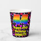 This happy and joyful birthday themed paper cup design features a large number “44” having a rainbow spectrum gradient inspired pattern. It also features the message “Happy 44th Birthday,”, and an editable name. The background features a pattern of red, purple, and pink heart shapes of various sizes. Loving, fun paper cups like this might be fun to use at a birthday party being held in celebration of somebody’s 44th birthday. [~Z0000548]