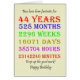 44th birthday card counting down the years, days, months, hours, and minutes. A card to give pause for thought! Leap years have been taken into account!