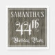 This luxurious and ornate birthday themed paper napkin design features an editable name and the message “44th Birthday Party”. The large number “44th” and the words “Birthday Party” are in elaborate script-style text. The background has a faux/imitation woodgrain-inspired pattern. Elaborate, elegant paper napkins like this might be useful at a birthday party/celebration being held in celebration of somebody’s forty fourth birthday. [~Z0000564]