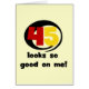 If you or someone you know is turning 45 years old, you'll love our 45 Looks So Good On Me birthday T-shirts, buttons, cards, stickers, mugs, magnets, and other 45th birthday apparel and gifts with a black, red, and yellow text design.