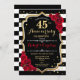 Elegant black white red design with faux glitter. Black and white stripes with red roses.
