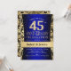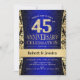 45th Wedding Anniversary Party Invitation in sapphire blue, black and gold.