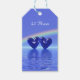 Gift tag with my design of two sapphire blue hearts floating on the water under a rainbow. Text says "45 Years" on the front and "To, From" on the back.
