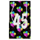 Colourful 45th birthday balloon bouquets with party confetti on black background.
