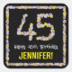 This floral, garden-inspired birthday-themed square sticker design has the message “Happy 45th Birthday,” along with a customisable recipient name. The large number “45” plus the border both consist of flower icons. Fun birthday themed stickers like these might be used or distributed at a party celebrating somebody’s forty-fifth birthday, or perhaps used when preparing invitations or gifts/presents for such an event. [~Z0000652]