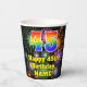 45th Birthday: Fun Fireworks Pattern + Rainbow 45 Paper Cups
