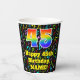 45th Birthday: Fun Music Notes Pattern, Rainbow 45 Paper Cups