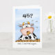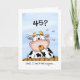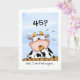 This card is a wonderful to send Happy Birthday Wishes to someone special. The card features a cute and surprised looking cow. Someone is turning 45 and the cow is shocked and surprised and considers to post those news on social media platforms.