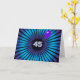 Contemporary neon optical illusion vortex design on black with purple balloon for 45th birthday.