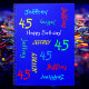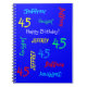 What a wonderful, personalised spiral notebook Guest Book for a 45th birthday party or any other occasion. On the cover, Name and Age repeats in different fonts and primary colours on a bright blue background. Easy to personalise - just CHANGE NAME, AGE, and OCCASION in ONE PLACE. Supports name up to 9 characters. A colourful and fun Birthday Party Guest Book - easy to change for ANY NAME, ANY AGE. All Rights Reserved © 2014 Alan & Marcia Socolik.