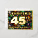 The front of this eye-catching and exciting forty-fifth birthday celebration/party foil invitation postcard design features a personalised name, a large number “45th”, the message “BIRTHDAY PARTY!”, and a border. The background of the front features a fun, multicolored pattern that resembles bursting celebratory fireworks. The back features personalised details about the event, such as the date, time, place/venue, and any other important information. Personalised invitations like these might be a fun way to let guests/attendees know about a birthday gathering being held to celebrate somebody’s 45th birthday. [~Z0000609]