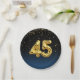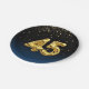 Gold mylar party balloons on gradient black and blue with gold star confetti for 45th birthday or anniversary party