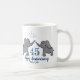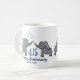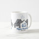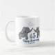 A 45th sapphire wedding anniversary cup in navy, grey and white with an elephant couple.