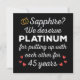 'Sapphire? We deserve Platinum for putting up with each other for 45 Years' quote for a couple who got married 45 years ago or a couple renewing wedding vows on their sapphire anniversary.