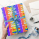 This cheerful and exciting birthday-themed wrapping paper design features a large number “46” with a colourful rainbow spectrum inspired gradient pattern, along with the message “HAPPY 46th BIRTHDAY,”, and a customisable recipient name. The background also features a fun multicolored rainbow spectrum inspired gradient pattern. Personalised birthday themed wrapping paper like this might be a fun way to wrap a gift or present being given to somebody who is celebrating their forty sixth birthday. [~Z0000572]
