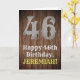 This western inspired and country inspired birthday greeting card design features a large rustic inspired number "46", the message "Happy 46th Birthday,", a custom name, and a faux/imitation wood grain inspired style pattern background. The inside has a custom birthday greeting message, or could perhaps be cleared and left blank if a message is to be written by hand instead. A personalised birthday greeting card like this might be a fun way to send a birthday greeting message to somebody who is celebrating their forty-sixth birthday. [~Z0000469]