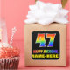 This fun, cheerful, and colourful birthday sticker design features a large number "47" and the message "HAPPY BIRTHDAY,", both having a rainbow spectrum gradient inspired pattern colouring, along with a bold yellow personalised name. The background is coloured black. Fun stickers like this could be used when wrapping a birthday present or gift being given to somebody who is celebrating their forty seventh birthday, or perhaps maybe be given out to the attendees at a birthday party. [~Z0000480]