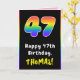47th Birthday: Colourful Rainbow # 47, Custom Name Card