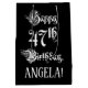 This opulent and elaborate birthday themed gift bag design features the message “Happy 47th Birthday,” in luxurious script style text, on a black coloured background. It also features a customisable recipient name. A lavish birthday themed gift bag like this might be a respectable way to wrap a gift or present being given to somebody who is celebrating their 47th birthday. [~Z0000557]
