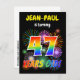 The front of this vibrant and exciting birthday party invitation postcard design has a customisable name, a fun bursting celebratory fireworks inspired pattern, and the message "47 YEARS OLD!" having a colourful rainbow spectrum inspired gradient pattern. The back features a customisable message with information about the party, such as when and where it is being held. Invitation postcards like this might be sent to potential attendees of a birthday party being held in celebration of somebody’s forty seventh birthday. [~Z0000452]