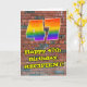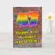 This vibrant and fun urban street art and graffiti themed birthday greeting card design features a large number “47” with a colourful rainbow spectrum gradient inspired pattern, along with the message “Happy 47th Birthday,”, and a custom name. The background of the front features a brick wall pattern. The inside has a customisable birthday greeting message, or could perhaps be cleared and left blank if a message is to be written by hand instead. A colourful, personalised birthday greeting card like this might be a fun way to send birthday greetings to somebody who is celebrating their forty-seventh birthday. [~Z0000586]