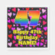 This fun and happy birthday paper napkin design features a large number “47” having a rainbow spectrum gradient inspired pattern. It also features the message “Happy 47th Birthday,”, and a custom name. The background features a pattern of pink, red, and purple heart shapes of various sizes. Fun, loving paper napkins like this might be fun to use at a birthday celebration being held to honour somebody’s 47th birthday. [~Z0000550]