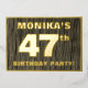 The front of this bold forty-seventh birthday party foil invitation card features a personalised name, a large number “47th”, the message “BIRTHDAY PARTY!”, and a border, all in foil. The background of the front features a rustic, yet elegant, faux wood grain appearance inspired pattern. The back features personalised details about the event, such as the date, time, venue, and any other information that may be important. Customisable invitations like these might be used to invite guests/attendees to a birthday gathering/party being held to celebrate somebody’s 47th birthday. [~Z0000598]