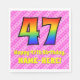 This festive and happy 47th birthday-themed paper napkin design features a large number "47" having a colourful pattern inspired by the look of a rainbow spectrum. It also features the message "Happy 47th Birthday,", followed by a personalised name. The background features a cheerful pattern of dark pink and light pink stripes containing loving pink heart shapes. Fun, editable paper napkins like this might be used at a celebration being held to honour somebody’s forty seventh birthday. [~Z0000417]