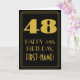 The front of this vintage appearance birthday-themed greeting card design features a large art deco style inspired number "48", the message "HAPPY 48th BIRTHDAY,", a custom name, and a border pattern consisting of lines. The front also has a black-coloured background. The inside features a personalised birthday greeting message, or could perhaps be cleared and left blank if a message is to be written by hand instead. A personalised birthday card like this might be a fun way to send birthday wishes to somebody who is celebrating their forty eighth birthday. [~Z0000502]