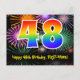 48th Birthday – Fun Fireworks Pattern + Rainbow 48 Postcard
