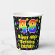 This fun and joyful birthday paper cup design features a large number “48” with a rainbow spectrum gradient inspired pattern, along with the message “Happy 48th Birthday,”, and a custom name. The background features a colorful pattern inspired by a field of stars. Colorful, vibrant paper cups like this might be fun to use at a birthday celebration being held to celebrate somebody’s forty eighth birthday. [~Z0000540]