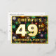 The front of this vibrant forty-ninth birthday celebration/party foil invitation postcard design features a personalised name, a large number “49th”, the message “BIRTHDAY PARTY!”, and a border. The background of the front features a bold, colourful bursting celebratory fireworks-inspired pattern. The back features personalised details about the event, such as the date, time, venue, and any other relevant information. Personalised invitations like these might be a fun way to let attendees/guests know about a birthday party/gathering being held to celebrate somebody’s 49th birthday. [~Z0000609]