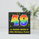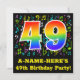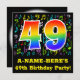 The front of this fun, exciting, and colourful birthday party invitation design features a large number "49" having a rainbow spectrum gradient inspired pattern. It also features a personalised name and the message "49th Birthday Party!". Part of the background features a fun pattern of various music notes and symbols having a variety of colours and sizes. The back features customised details regarding the event that the potential guests are being invited to. Joyful, personalised birthday celebration invitation cards like this might be used when inviting guests to attend a celebration being held to celebrate a singer’s, a song composer’s, a musician’s, or somebody else’s forty ninth birthday. [~Z0000427]