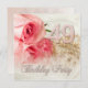 A beautiful delicate image of a rose in soft pink tones. In the background is a string of pearls. The whole effect is softened by a delicate feather. A delightful 49th birthday party invitation. Change the back to your own party details
