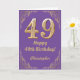 49th Birthday Purple and Gold Glitter Frame Card
