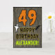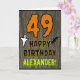 The front of this spooky and scary Hallowe'en birthday themed greeting card design features a large number "49". It also features the message "HAPPY BIRTHDAY,", plus a customisable name. There are also depictions of a bat and a ghost on the front. The inside features a customisable birthday greeting message, or could perhaps be cleared and left blank if a message is to be written by hand instead. A personalised birthday card like this might be a fun way to acknowledge somebody’s forty ninth birthday that also falls on Halloween (October 31st). [~Z0000410]
