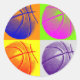 4 Colours Pop Art Basketball Classic Round Sticker