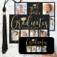 It's a joint graduation party! Announce the achievement of four graduates and invite family and friends to celebrate with stylish group graduation party custom photo invitations. All pictures and wording are simple to personalise, and the colours can be customised using the Zazzle design tool. (IMAGE PLACEMENT TIP: An easy way to position a photo exactly how you want is to crop it before uploading to the Zazzle website.) This template is an announcement card on the front with the grad party invitation on the back. The modern black and gold design features handwritten style script calligraphy with a mortar board cap, elegant classic typography, and eight photos of your choice, such as senior pictures or images from the commencement ceremony. Please note that gold is printed colour, not metallic foil. This graduation invitation card is a stylish way to announce a special day celebration for multiple grads, such as siblings, best friends, cousins, teammates etc. Congratulations to the graduates!