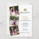 Featuring your 4 favourite grad photos, this modern black and gold graduation party invitation can be personalised with your grad photos and celebration details. Designed by Thisisnotme©